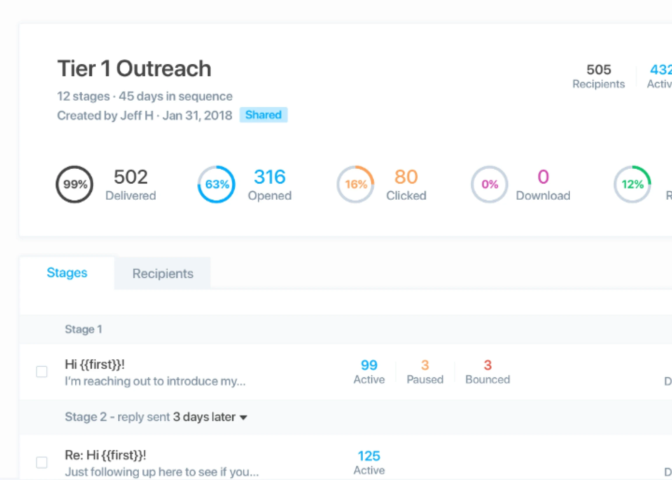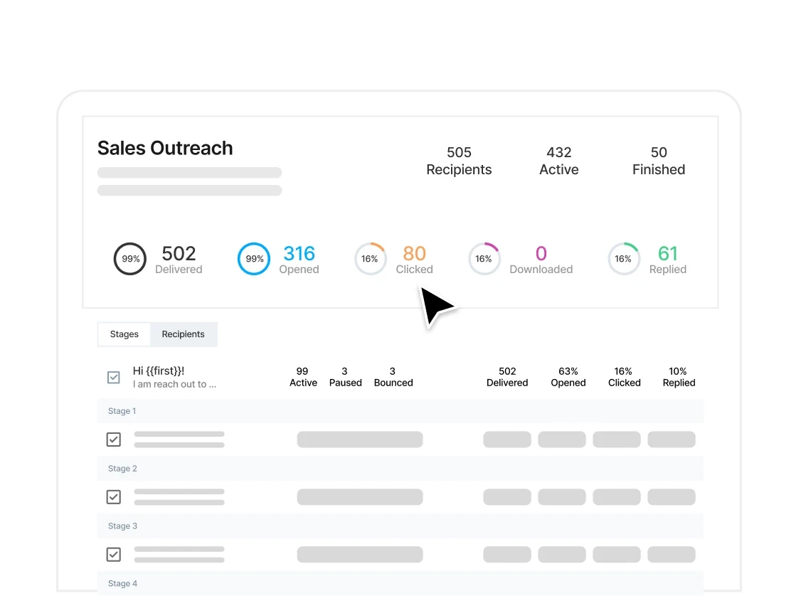 Create multi-stage sequences, track engagement, and stop guessing who to follow up with or when.