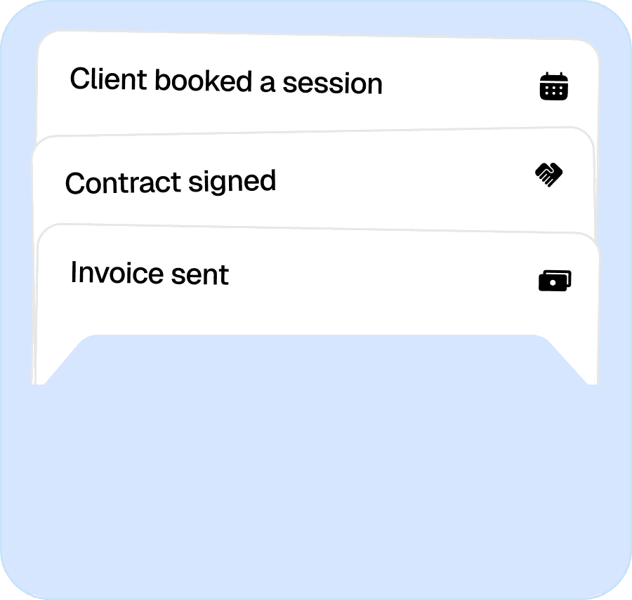 Client inquiries, bookings, contracts, galleries, follow-ups your inbox is where work turns into revenue.